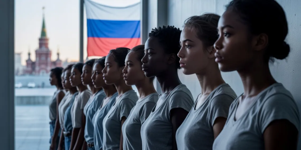 Young Nigerian women in line in Russia [PHOTO CREDIT: Ideogram]